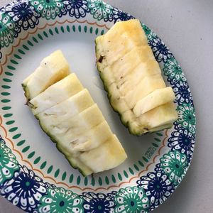 終盤にお目当てのパイナップルを、食べ放題ばりに切ってくれるのですが、