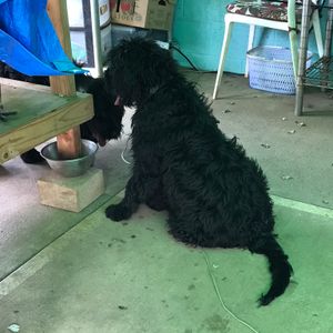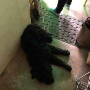 メインの果樹園では3匹の黒犬がお迎えしてくれて、お腹をさすると、ひっくり返ってました。