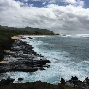 東海岸を、色々な情報を聞きながら、立ち寄り場所では写真を撮っていただきながら、とても楽しく観光ドライブをしました! 楽しみにしていたハナウマ・ベイは入場制限がかかっていたのか、入れなかったのは残念でした!フランキーズ・ナーサリーに到着し、あの有名(?)な黒いワンちゃんに出会ってから園内へ!個人的には見たことないフルーツをたくさん見て、試食をさせていただきましたが、私はライチがとても美味しかったです!この頃雨が降り始めましたが、屋根の下でゆっくりとおにぎりやフルーツをいただきました!最も楽しみにしていたハニークリームパイナップルやアボカドなどをいただきましたが、フルーツでおなか一杯になったのは初めてです(笑)ガイドさんたちも楽しくて良い1日でした!