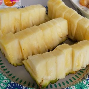 果樹園の散策が終わると試食用に様々なフルーツが用意されていました。お腹いっぱいに試食ができ満足しています。パイナップルの甘さは感動的です。