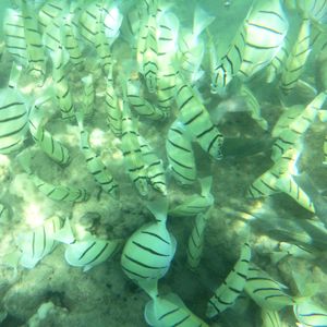 今回は残念ながら天候に恵まれず曇〜晴れで、期待が大きかった分残念な気持ちでしたが、浅瀬でも小魚がたくさんいるので十分楽しめます!2年前はウミガメも見れたので、運が良ければ出会えるかも☆