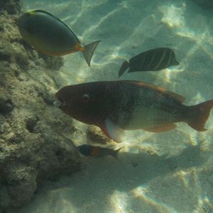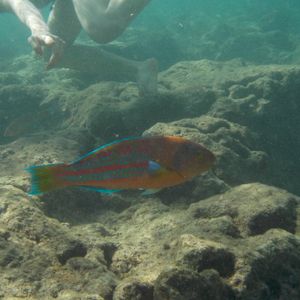 様々な種類の色とりどりの魚が、岩場の藻を食べている姿が目の前で見られてとても楽しかった。