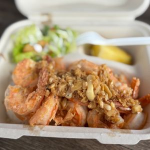 昼食のガーリックシュリンプは、ほかの所で食べたものよりパンチが効いていて美味しかったです。