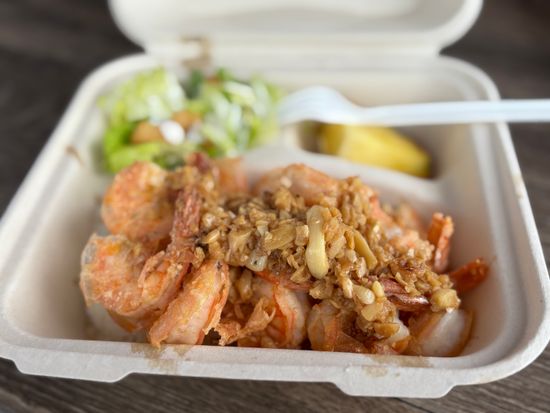 ガーリックシュリンプは以前参加したツアーでは広い敷地に観光客がずらっと並んでただ食べるだけと言う感じでしたが、今回はおしゃれなキッチンカーから出来たてのガーリックシュリンプをハレイワ感満載の所で食べられとても満足しました。殻もカラッと揚げられてそのまま美味しくいただきました