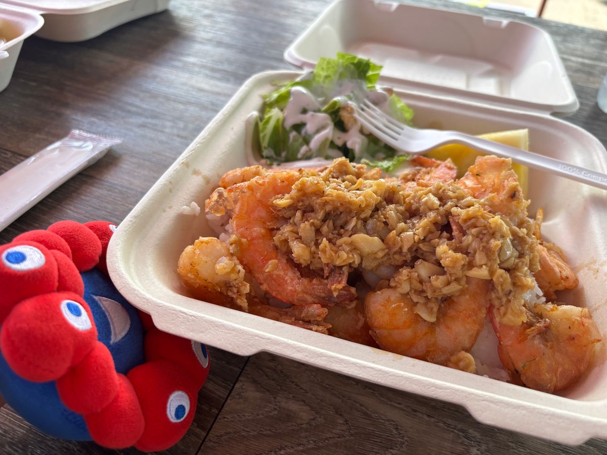昼食のガーリックシュリンプは、ほかの所で食べたものよりパンチが効いていて美味しかったです。