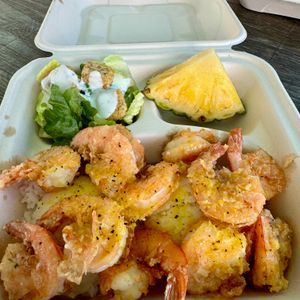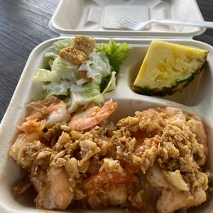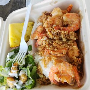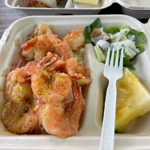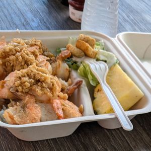 ランチは、ガーリックシュリンプ味のボックスランチで、ボリュームもあり、美味しかった。