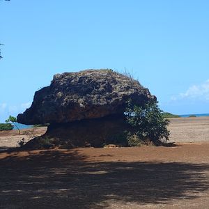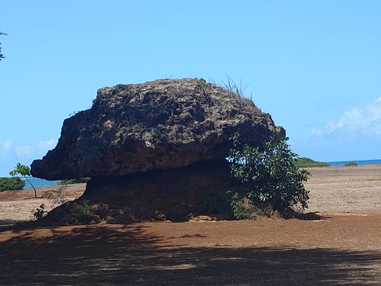 一応いくつかのスポットの話をしておくとすると、どこも訪れるべき場所であったことに疑いの余地はありませんが、特に心を奪われたのはラビットアイランドを臨む海岸です。あまりの絶景に息を呑むのは誰もが避けられぬ道かと思うのですが、景色の迫力による気分の高揚と新婚の浮かれ気分の中、写真撮影をしてくれるベンさんの口車に乗せられた私は(どうやらこのツアーでは恒例らしいのですが)、人生初の"お姫様抱っこ"を敢行します。妻を両手に抱えて立ち上がる瞬間、背中の下部から臀部の上部にかけて、一閃の稲妻が走ります。そう、ぎっくり腰の予兆です(ぎっくり腰の経験が豊かな方であればご存知かもしれませんが、ぎっくり腰は一発の衝撃でゲームセットを迎えることもあれば、首の皮一枚繋がってマッチポイントで何とか持ち堪えることもあり、今回は後者でした)。20代後半にして過去3度のぎっくり腰を経験していた私の大脳新皮質には、この閃光が走った直後の「初動」が何よりも、理想的なお姫様抱っこの姿勢の維持よりも重要であるということが、マリアナ海溝よりも深く刻まれていました。全神経を集中して最小限の負荷と衝撃に留めて妻を着陸させた私は、腰の爆弾が着火されたというあまりにもダサい事実を誰にも悟られぬようその場を離れ、速やかに(しかし腰に気を遣い慎重な足取りで)バスに向かいました。