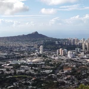 タンタラスの丘から望むダイヤモンドヘッド・ワイキキホテル群・空港はとても良かった。