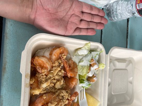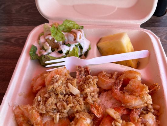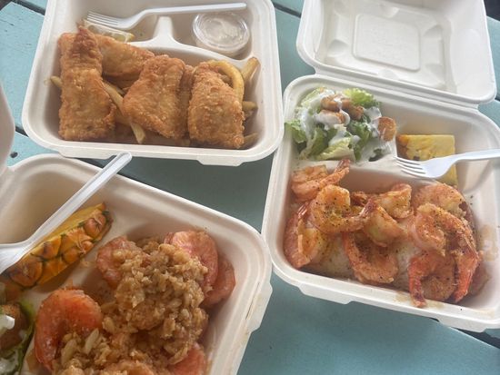 ハレイワでのランチは、ガーリックシュリンプ以外にもオーダー可能で、大人はガーリックシュリンプとレモンシュリンプ、娘はフィッシュアンドチップスを頼み、3人でシェアしました。どれもボリューミーで美味しかったです。