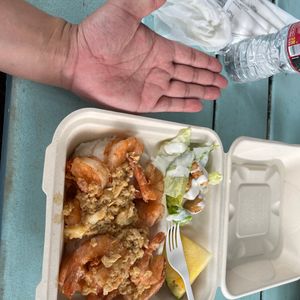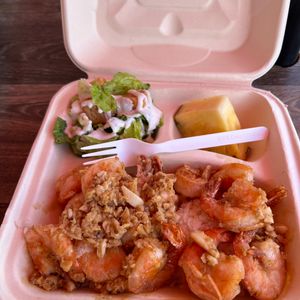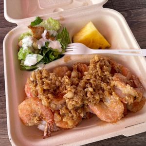 ランチはガーリックシュリンプ以外にもオーダー可能ですので、海老やガーリックが苦手な方も食事を楽しめることができます。(チキンや野菜を揚げた春巻きのようなものなど)。