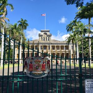 イオラニ宮殿でハワイ語のオリまでとなえるとは!お花や木の写真、曲もかけてもらい、雰囲気を味わう方ができました