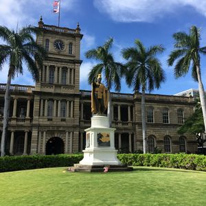 オアフの壮大な景色とイオラニ宮殿のハワイ王朝の歴史で