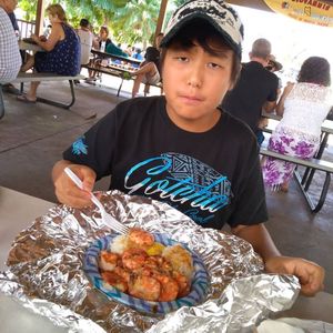 ガーリックシュリンプを食べるのに、大人よりも時間がかかってしまった息子ですが、マキさんが、近くで待っていてくださり、