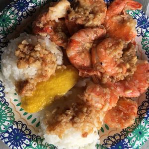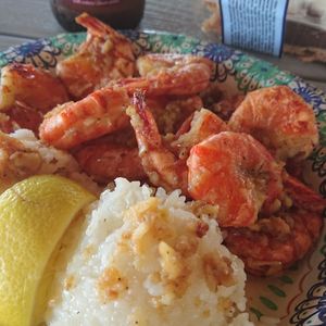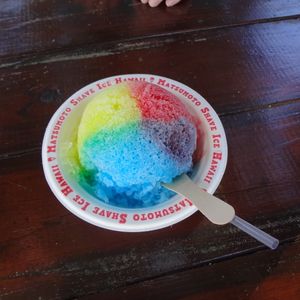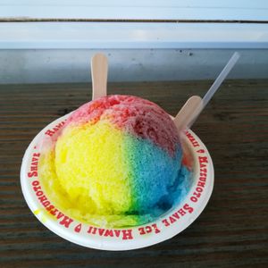 昼食についていたガーリックシュリンプは絶品でした。また、TVで見たマツモトシェイブアイスも食べることができました。