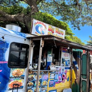 ノースショアでは、昼食込で2時間程度の自由時間があります。ジョバンニのガーリックシュリンプを食べたい旨伝えたところ、片道分送ってくれるとのことでした。ただ、もし全員ガーリックシュリンプを食べたいのであれば、マキさんの顔パスで1人2ドル安く、並ばずに購入できるカフク店に連れて行ってくれるとのこと。全員の意見が一致したため、昼食はカフク店へ行くことになりました。(その分ノースショアでの自由時間は1時間15分くらい?に短くなりました。)