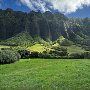 The Kualoa ranch is expansive and offers beautiful vistas of the Hawaiian landscapre - moutains, valleys, forests, and ocean views. The drive/pathway chosen to drive thru the 4000 acres is fast. I recall 3-4 stops - and always felt kind of rushed to jump out'the vehicle - look around - and then get back on the road as other UTV, bus, and bike tours were stopping at the same places. So, 1) it was hard to look around at the views while driving - typically between 15-18 mph - which sounds slow - but you're in a line of vehicles - someone drving in front of you - someone behind. Attention must be on the driving at all times while driving. Vehicle behind us was 'rushing' on our bumper - some kid in the car shouting at us to 'drive faster' rudely. Ummm - when you have to be attendant to what's driving in front of you (the guide in a vehicle) - sometimes, kiddo, that is not possible. And yes, his parents were with him - and yes, the father was driving - fully aware of the rudeness - that's all I say. Stopped to look at some of the remnants of scenery left by movies shot on location there. Photo ops were hard to grab when so many people and other groups were vying for the best views and angles. The guides were o.k. - a little flippant and joking around with each other a bit much. One of the guides 'treating' us to some local Hawaiian lore about the land and lizards - which did not make any sense to us and just seemed kind of out of left field and a little odd. It was worth seeing the land but - if you're driving, you'll miss out on a lot - until the brief stops.