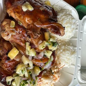 ツアーが11時に終わると13時のバスの集合が12時45分だったのでカフェでランチしました。カフェは日替わりが5つあったのでスパイシーポキのプレートとホットドッグとチップス(ポテト)のセットを頼みました。ポキには刻んだめかぶもたくさん入っていてボリューム満点。ホットドッグはケチャップやマスタードの他にサルサソースなども置かれていたので使って食べました(お箸スプーンフォークも置いてます)。どれもとても美味しかったです。時間があったのでココナッツの皮に入ったマンゴーアイスも買って食べましたがめちゃくちゃ美味しかったです。あと外のスペースで食べたのですが、食べながら色んな鳥と触れ合えるのもハワイぽくて良かったです。