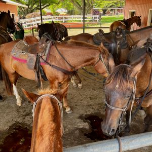 2時間の行程の途中で、たびたび大丈夫?と聞いてくれるので、日本人的に「大丈夫」と答えていたのですが、他の米国人達は膝が痛いとか腰が痛いとか遠慮せずに色々言っているので、私も膝が少し痛む旨伝えたところ、あぶみの長さを調整してくれました。足の位置が下がって膝が少し伸びるとかなり快適になったので、乗馬中に身体の痛みなどが気になったら、遠慮せず伝えてみると良いと思います。