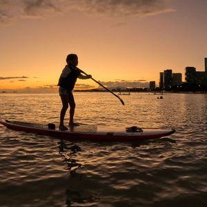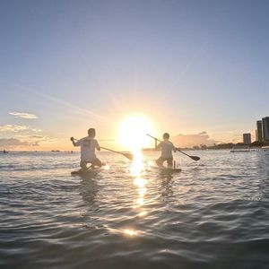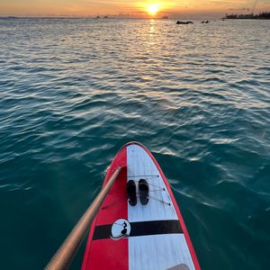 波のない入江でSUPをするので、到着日の体力でも出来ます。また、綺麗なサンセットに疲れも吹き飛びます。