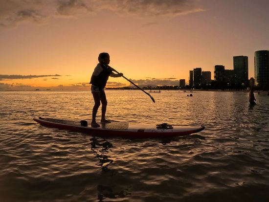 明るかった海が、sunsetで少しずつ暗くなるのを、SUPで経験できたことが、とてもよかったです。