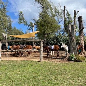 天候が悪く豪雨が続いていましたが、乗馬の時だけ奇跡的に少し晴れ間が見えて楽しく海辺乗馬が出来ました。コースは海の望みながら平坦で初心者でも安心なコースです。天気が良ければ美しいん景色を堪能できたと思います。ノースシュア観光では定番のガーリックシュリンプを小雨の中食べました。