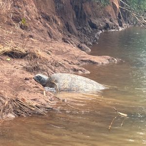川の方では大きなカメ3匹と遭遇、海の方では遠くにイルカが何回も何回もジャンプしてるのが見れて最高でした!私達ついてる!運がいい!と大喜びでした!