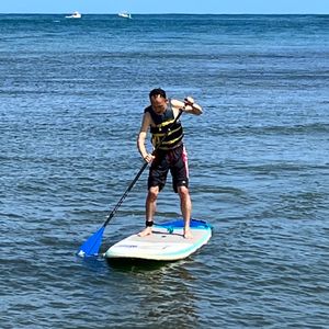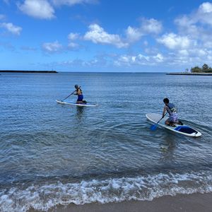 SUPは私も妻も初めてでしたが、漕ぎ方のコツなども教えていただけたので二人とも早い段階で立ちながら漕ぐことができました。十分にSUPを楽しんだ後、ハレイワの街の散策もできました。インスタで話題になっており、行ってみたいと思っていたマツモトシェイブアイスのかき氷を食べて、スヌーピーのショップでノースショア仕様のお土産も買うことができ、ハレイワでしかできない貴重な体験ができました!ランチでいただいたガーリックシュリンプとハンバーガーもとても美味しく大満足です。ガイドのカズさんがハワイについて色々とオススメの場所などを教えてくださってハワイ初心者の私たちにはとてもありがたかったです。1つのツアーでSUPからランチ、散策まで楽しめて大満足です。貴重な体験をさせていただいてありがとうございました!