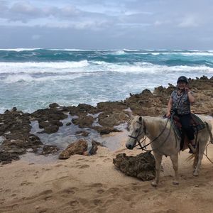 ワイメア渓谷での乗馬希望でしたが催行されず海辺のツアーにしましたが、45分でも十分楽しめ、景色の良いところで馬に乗った写真も撮ってもらえて満足です。日本ではできない自由な乗馬が出来ます。舐められて草めちゃくちゃ食べてましたが笑。
