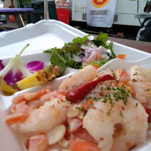 知らない人達5組で、ガイドさんの歴史的なお話やハワイ事情…等あまり聞くことの出来ない楽しいお話しも交えて車はドールプランテーションに‼そして次に立ち寄ったのは、青海亀散策!離れた所で、少し見えたものの残念!ハレイワに行き早目のランチ……みんな、ここに来たならガーリックシュリンプが食べたい‼のリクエストに、時間のロスが無いようにと電話注文をしてくださり、行ったら直ぐに頂けました‼二人で食べて丁度良いくらいのボリュームにお洒落なプレートランチ✨とっても美味しかった❗