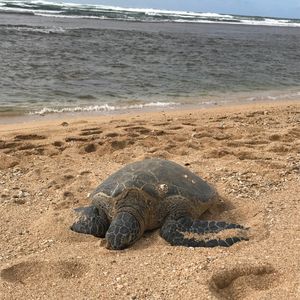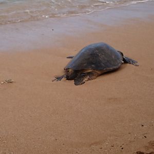 前回、行った時は遭遇出来なかった海ガメ1匹が海岸で甲羅干しをしてました。