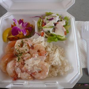 ハレイワタウンでは、ガーリックシュリンプを昼食に食べました。