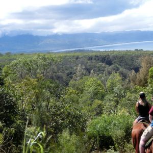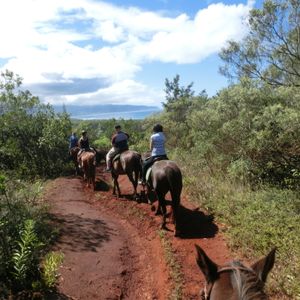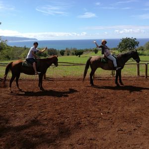 渓谷乗馬プランで利用させていただきました。ドールプランテーションでお土産を買って、海亀を見て、おいしいガーリックシュリンプを食べて、欲しかったコーヒー豆を買って、母(60代・初めての乗馬)の念願の乗馬をして、天気にも恵まれて…。運転手さん(兼ガイドさん?)のお話も、どちらの方も(途中交代があって2名いらっしゃいました)興味深いお話をしていただいて、こちらからの質問にもしっかり答えていただいて、母の長い話にも付き合っていただいて(笑)。牧場オーナーのマークさんも、英語が苦手な母の話をちゃんと聞いてくれて、優しい笑顔で対応してくれました。本当に最高の時間を過ごすことができました。母も私も大・大・大満足です!!オアフ島に行く友達がいたら必ずおすすめします。ありがとうございました。