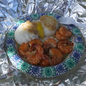 ガーリックシュリンプが有名なところで、ガイドさんが気を利かせて人数分おーだーしてくださったので、それを持って帰って夕暮れのワイキキびーちで食べることが出来て、とてもよかったです!