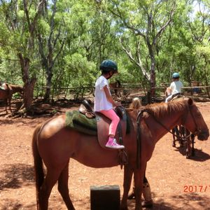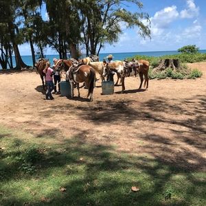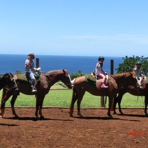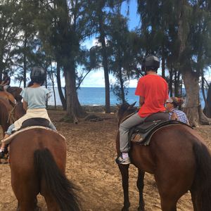 ハワイに来るたびに必ず体験しています。孫ともども何回乗馬しても飽きさせません。今回は途中で少しシャワーにあってしまいましたが、それもありかなっと思いました。木々の間を乗馬しながら突き進み、いつしかハレイワ湾を見渡せる絶景場所に来ると、今までドキドキしながら乗馬していたのに一変で心が開かれました。我が家では、ハワイ=乗馬と決めて日程を組んでいます。