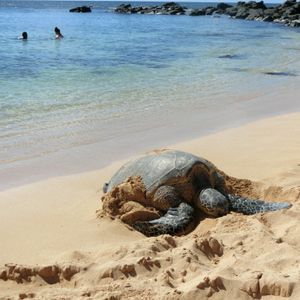 ビーチではウミガメも見れて良かったです。ビーチにシートを敷いてガーリックシュリンプを食べながらサンセットを見たのが本当に最高でした!