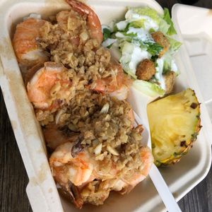 ・ガーリックシュリンプは美味しかった。大きいプリプリなエビが八尾入っており、大人の女性で腹8分目くらいでちょど良かった。ご飯食べるところが結構あるため、個人で好きなお店に入って食べるスタイルでも良いと感じた。昼食含めて1時間半滞在時間があったが、やや時間を持て余したので、もう少し短くてもよい。