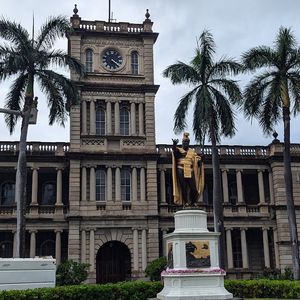 カメハメハ大王は、ハワイ王国を建国した王で、カメハメハ1世が正式な名前ですが、カメハメハ大王の名で親しまれています。 左手に平和の象徴となる槍を持ち、右手はハワイの繁栄を表し掲げられています。 カメハメハ大王像は、ハワイ州に3箇所建立されています。 ホノルルのアリイオラニ・ハレ(ハワイ州最高裁判所)にあるカメハメハ大王像が、最も有名ですがこれは2体目の像です。 オリジナルは、ハワイ島北部のカメハメハ大王の生誕地カパアウにあります。 3体目は、ハワイ島のヒロに建てられています。 4体目もあり、ワシントンDCにあります。 高さ5.5メートルのカメハメハ大王像は、オアフ島で人気の撮影スポットにもなっています。