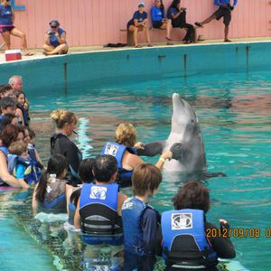 いるかに触りたい♪という母の希望で参加しました。レビューにあるように、10人くらいのグループで流れ作業的に触る感じではありますが、やっぱり本物のいるかと一緒と泳ぐというのはあまりできない体験。パンフに無い時間帯に、日本人グループ旅行向けの短いいるかショーが有り、たまたま一緒に見させて頂きました。それ以外にもいるか、ペンギン、アシカのショーを見ました。写真は3枚セット40ドルで売っていました。全般的にお高いですが、一度やってみる価値はあると思います。