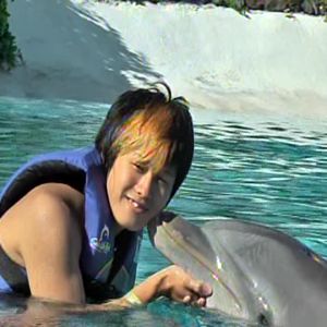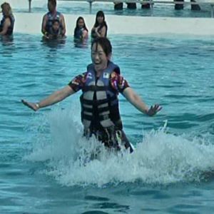 私は同行で、妻がイルカと戯れました。非常に楽しんでました。