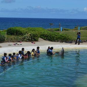 1歳3ヶ月の娘とドルフィンエンカウンターに参加しました。イルカの背中を触ったり、指示を出して握手したり、キスしたりしました。個人的にはイルカを直に触るのは初めてだったので、珍しい体験ができ満足しました。1歳児の娘は窮屈なライフジャケットを着せられて不審そうに眺めているだけで、楽しむにはまだ早かったようです。また、妊娠中の妻は規則により参加は不可だったのですが、確かにイルカのヒレが結構な力で当たることがあったのでこの規則には納得しました。参加する子供の想定年齢は幼稚園児以上くらいでしょうか。子供達が大きくなったらまた挑戦したいと思います。