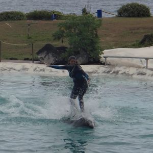 初めてイルカとそんな近い距離で、一緒に水遊びして、とても面白かった(^_^)v最後イルカと一緒に泳いで、ドキドキしてすごく驚きの体験でした。今度子供を連れて行きたい〜