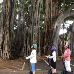 練習では、なかなかうまく止まれなかったりして、ドキドキのスタートでしたが、コーチの親切で適切な対応もあって、なんとか出発。ハワイは4回目でしたが、改めて市内観光をしながらセグウェイで、風をきって走るのは本当に気持ちが良かったです。海辺もいいけど、ダウンタウンもとても素敵。バニヤンツリーの下で記念撮影したり、盛りだくさんでとても楽しい思い出なりました。