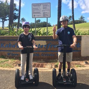 セグウェイ体験は初めてだったけど、スタッフの方々がとても親切で丁寧に教えてくれて、終始笑顔でした。市内観光コースにして正解!自分達で行く予定になかった所に行けたし、ハワイの歴史も教えて貰ってあっという間の時間でした。こんどは、プライベートで乗ってみたいです。