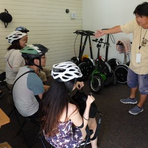 スタッフの方は皆さんとても丁寧で明るく、終始楽しめました。室内で簡単なレクチャーがあり、その後に一列に並んで街を走れます。先導してくださる方の他に写真を撮ってくれる方がいて、走行している動画も撮影してくださいました。