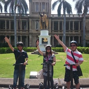 最初にセグウェイの練習をしました!一人一人がセグウェイに乗りこなせるようになるまで練習させてもらえました!ハメハメハ大王像など歴史的な名所も説明してもらえ、写真も撮ってもらえました!!すごく大満足でした!!!!!