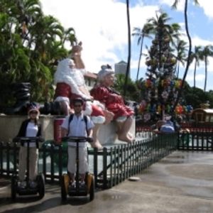私達は13:30からのコースでした。ホテルまで迎えに来てくれた車の中にはセグウェイが積んでありありました。アラモアナの公園に着いて、レクチャーを聞いて直ぐに乗り込みました。思った程難しくは無く、直ぐになれて全部で4時間ぐらい色々な場所に行き、説明を受けながら写真を写し、楽しく過ごしました。歩道を走っていると、羨ましいような人ビックリした人達がこっちを見ているので優越感がありました。
