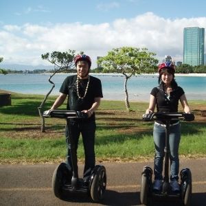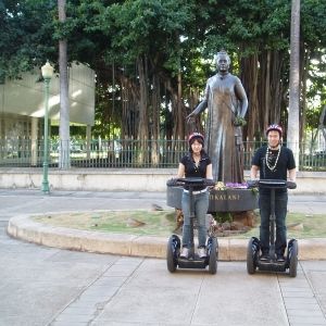 実はこのセグウェイツアーを申し込む前から、セグウェイという乗り物に非常に興味があり、いつかはセグウェイに乗ってみたいと思い、一人でネットで値段とか調べていた時がありました(笑)。今回は新婚旅行という事で色々オプショナルツアーを探していたら偶然このセグウェイツアーを発見しビックリしました。そしてセグウェイのことを何も知らない妻を(強引に)説得してすぐに申し込みました。そしてハワイに到着した日の午後にさっそく参加しました。初めてのハワイで、ハワイの歴史とかも何も知らなかったのですが、このツアーで色々な街中を回りながらハワイの歴史を詳しく教えてくれるので、楽しいだけでなくとても勉強になりました。そしてこのツアーのもうひとつの魅力は、現地の人や観光客に珍しがられて写真を撮ったり、話しかけてくる人もいるので優越感に浸れます。初めてのハワイで昔からあこがれていたセグウェイに乗れてとても幸せでした。いつか日本の公道でもセグウェイを乗れるようになったら(今は私有地でしか乗れないらしいです)絶対に買います!