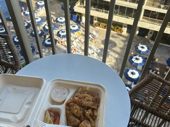 お昼のガーリックシュリンプもボリュームたっぷりで味もとても美味しかったです。