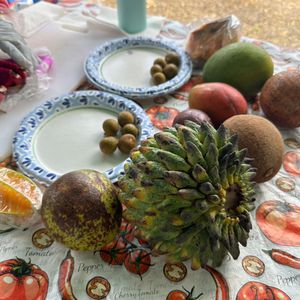 農園に到着後、フルーツやお花にとっても詳しいMAKIさんの案内でスリナムチェリー、サントール、キューカンバーフルーツなどなど聞いたことも見たこともなかったフルーツを数えきれないほど取って食べました!タイミング良く熟しているフルーツを探すのがとっても楽しかったです!