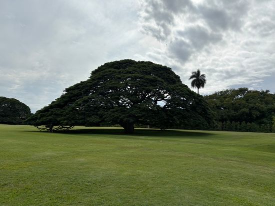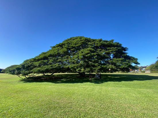 自分たちだけではなかなか行けないノースショアに行けて、美味しいガーリックシュリンプを食べることができて嬉しかったです。そしてなんといっても、ずっと見てみたかった "この木なんの木 気になる木"を見て触れて、その日かげに入ることができて、大感激でした。